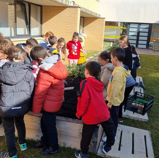 Los niños de segundo de primaria cuidan su huerto escolar🥕🍅🌻